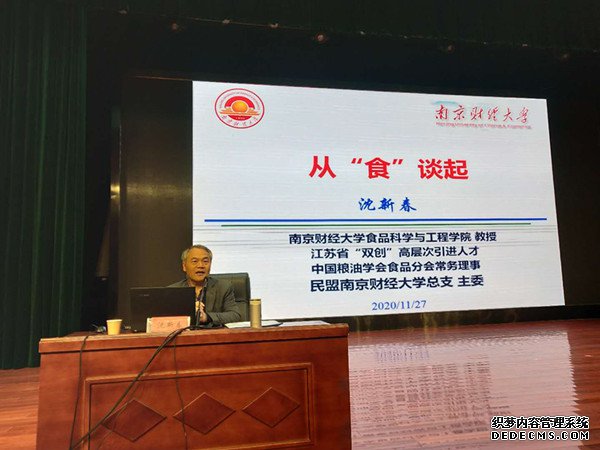11月27日,江苏省海州高级中学开展吉余讲堂系列讲座之走近高校。本次讲座由民盟南京财经大学主委沈新春教授给高二年级学生带来《从食谈起》。沈新春教授是日本东京大学博士,主要致力于粮油食品绿色精深加工技术、功能性粮油食品与分子营养等方向的研究,并享有很高的学术声望,他同时还兼任中国粮油学会食品分会常务理事,国家粮食产业科技创新(滨州)联盟理事等职。